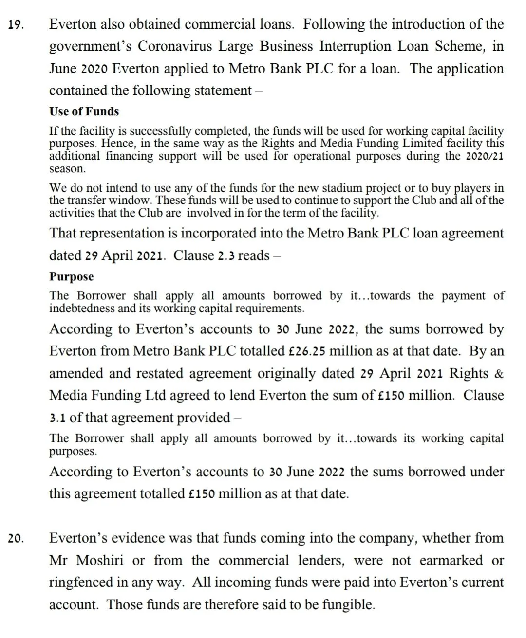 At the pre-trial review on 4 October 2023 both parties were given permissionto amend their pleaded cases. In its Amended Answer Everton admitted ithad abandoned its claim to be entitled to many of the additional exclusionsthat it had advanced in its PSR calculation, and accepted that it had exceededthe PSR threshold.