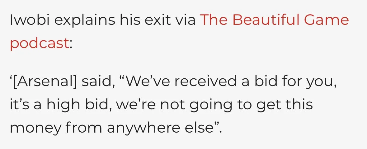We let too many of our players' contract run out. Who's to say we won't actually get any money for Iwobi if we sold him. Some fools out there actually spend money on Maupay