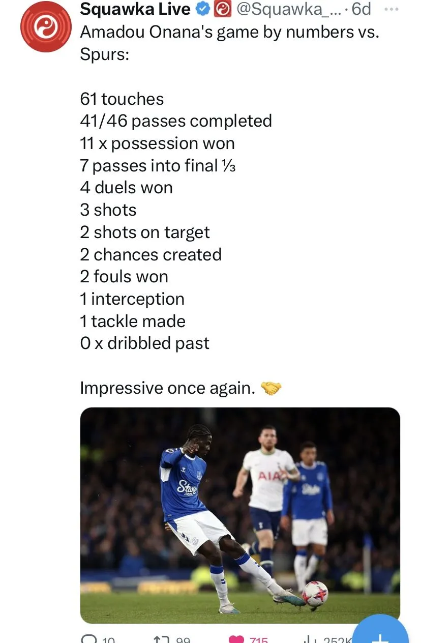 blueboy, I was debating how good, bad or indifferent Onana was with you not about the transfers of Allen,Gomes, Gbamin, I know how they turned, Onana might, as you say, turn out to be a very good signing but from what I’ve seen up to now he’s not much help to the team in our present predicament, he’s more of a handicap and Doucoure, true, hasn’t been a great signing but in the,last few weeks he’s been what we need now, imo, and I prefer him to Onana at the present time, needs must, beggars can’t be choosers.