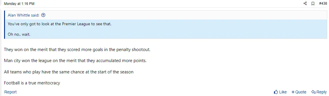 Well forgive me for wanting us (a big club) to actually have some dignity. But I couldn't care less if we won the EFL cup its a joke.