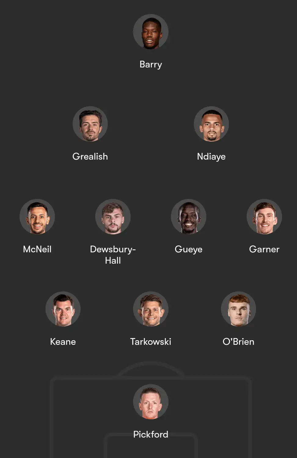 Yes - a back 3. As much as Garner ended up doing an able job at LB in a four I really don't want to see him in that part of the pitch for too much longer. Both McNeil & Ndiaye have some defensive qualities to their game which can suit deputising in wing-back roles. KDH & Grealish in the middle of the pitch to (hopefully) knit things together on the ball and Barry to be given a shot in place of a Beto that underperformed on Monday night.