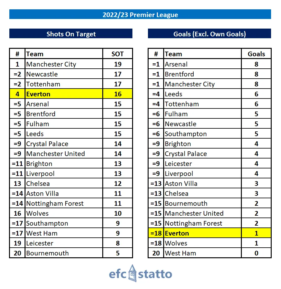 As has been pointed out elsewhere, many of those shots were in the last 10 mins when we were losing and trying to rescue a point against a team that was holding on for a win.Apparently the "system" (of a back 5) is the issue, not the fact that we have a massive lack of quality in the final 3rd when missing Dominic Calvert-Lewin.