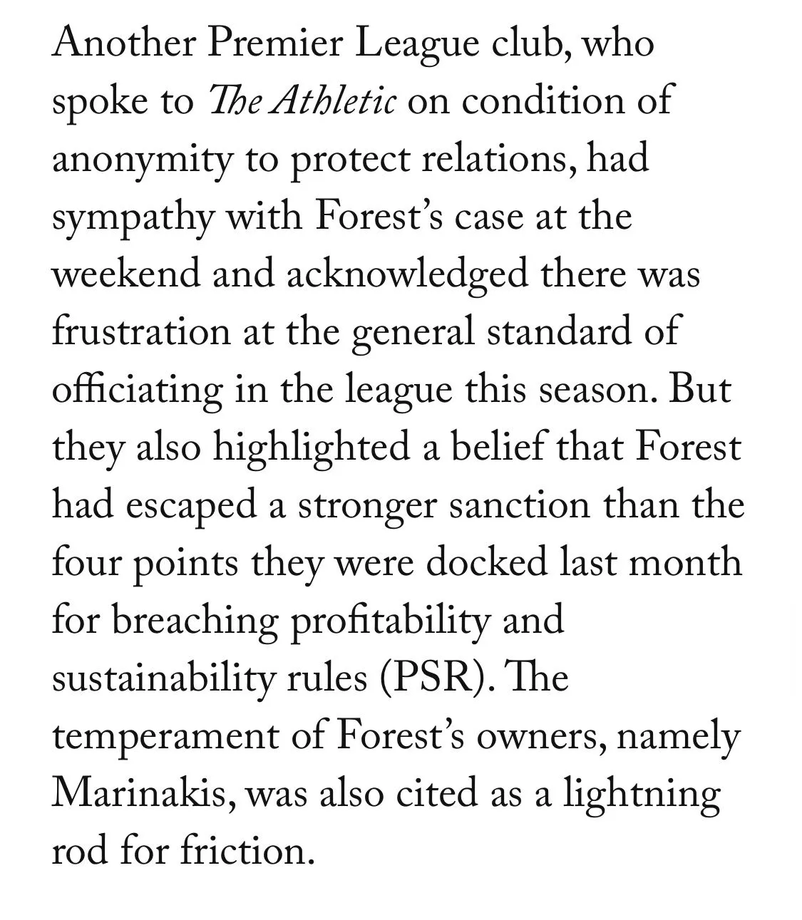 In The Athletic, most clubs calling them babies, but one statement showed sympathy. What we reckon? This sounds like it could be us given the statement around points. Or Burnley, they love a moan over points when they’re in 19th