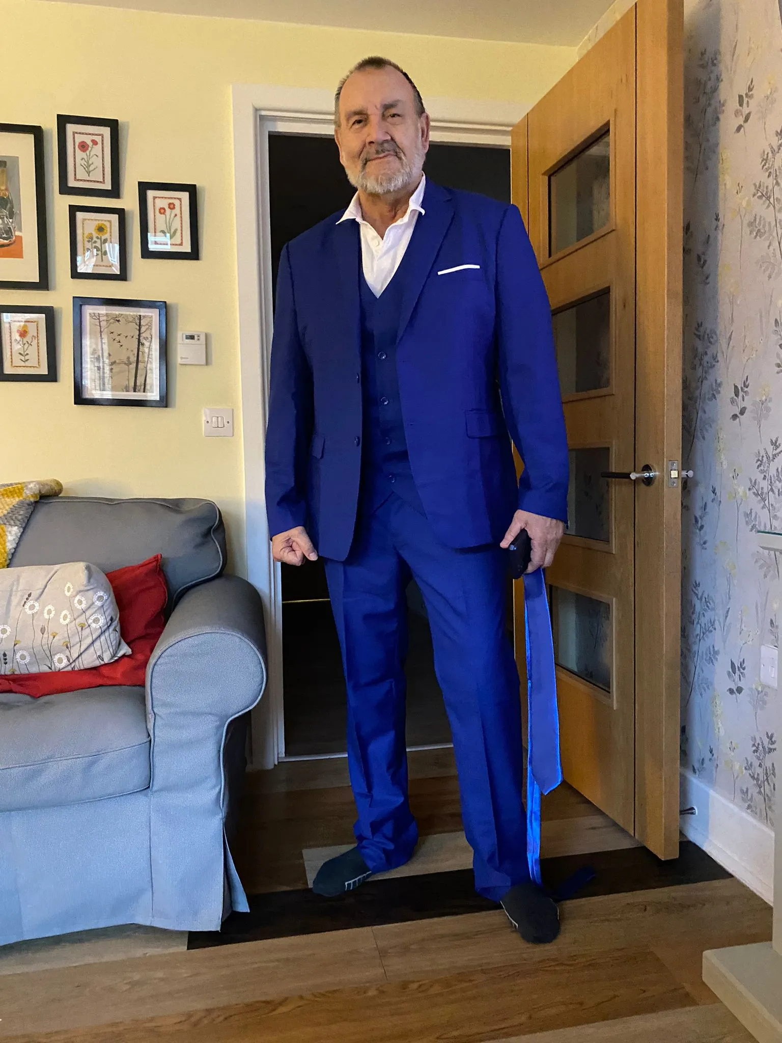 go for it, you'll be right up someone's alley wearing thatAs it happens I'm playing the part of Trigger in the famous 'Del leans on the bar and falls though the gap' in a Sixties Club review. I was given the royal blue suit today. I probably won't wear it in the Lisbon though.