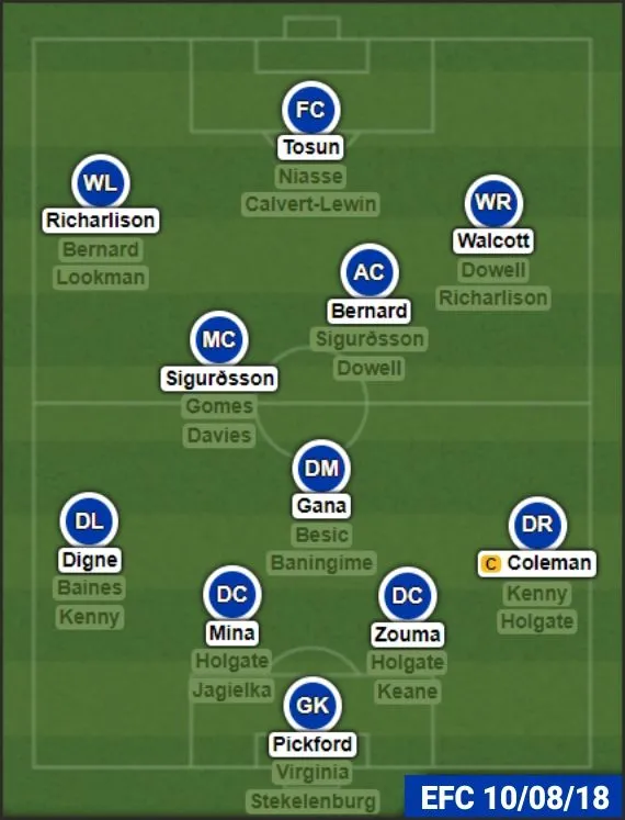 Where basically the front 3 could be any combination seeing Richarlison and Walcott could play as the main forward, so Tosun drops to the bench. This also depends if Bernard is the player we hope he is and can hack it in the PL.