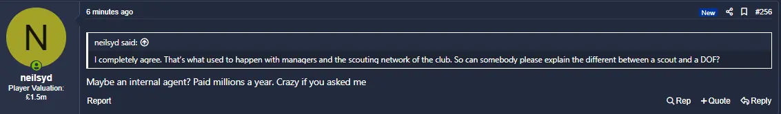 I completely agree. That’s what used to happen with managers and the scouting network of the club. So can somebody please explain the different between a scout and a DOF?