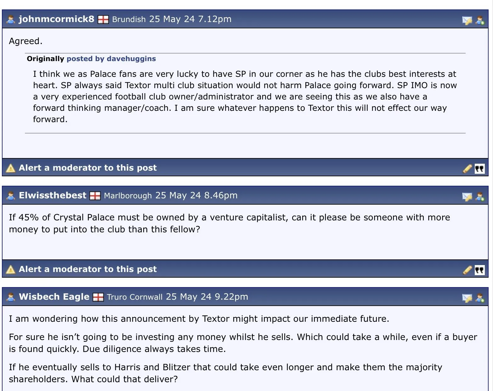 No doubt he has a passing interest in Everton, but until he sells his Palace holdings, it seems unworkable.