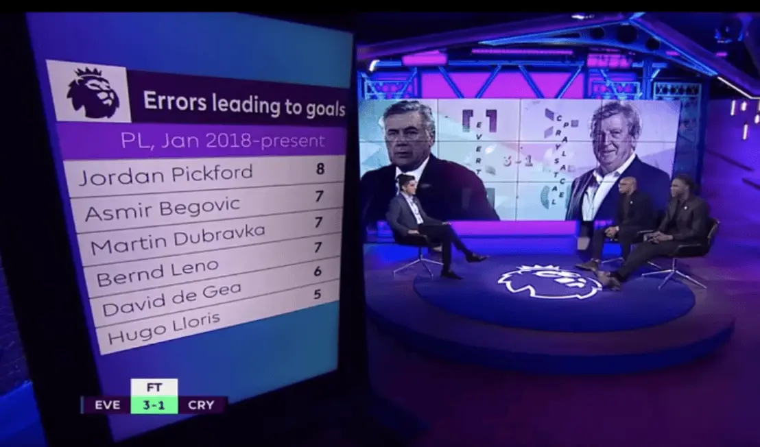 Last season Pickford made four errors which led to goals. He has two in the current campaign.