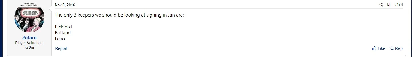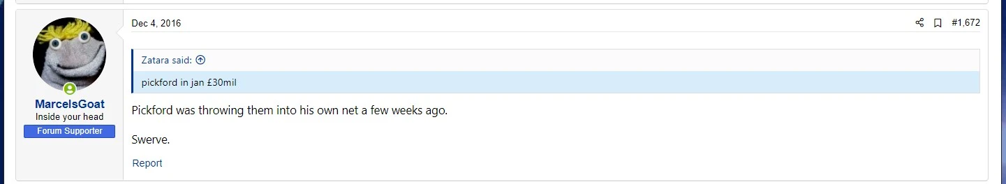 But as said people were looking for things that didnt exist for a while, and yes he is making them a lot more lately and rightly getting moaned at, but i dont get that a wonder goal that he has no chance with in past for Example is his fault or the no giving credit to him for making a save at all because people hate him-- should go both ways give credit for making great saves,moan about proper errors and thats proper errors not ones that people come up with just to have a moan, I Just dont see who we are signing thats a decent number 1 and people saying sign anyone just for the sake of getting Pickford out the team etc is wrong as well -think we may only sign a number 2 at best myself