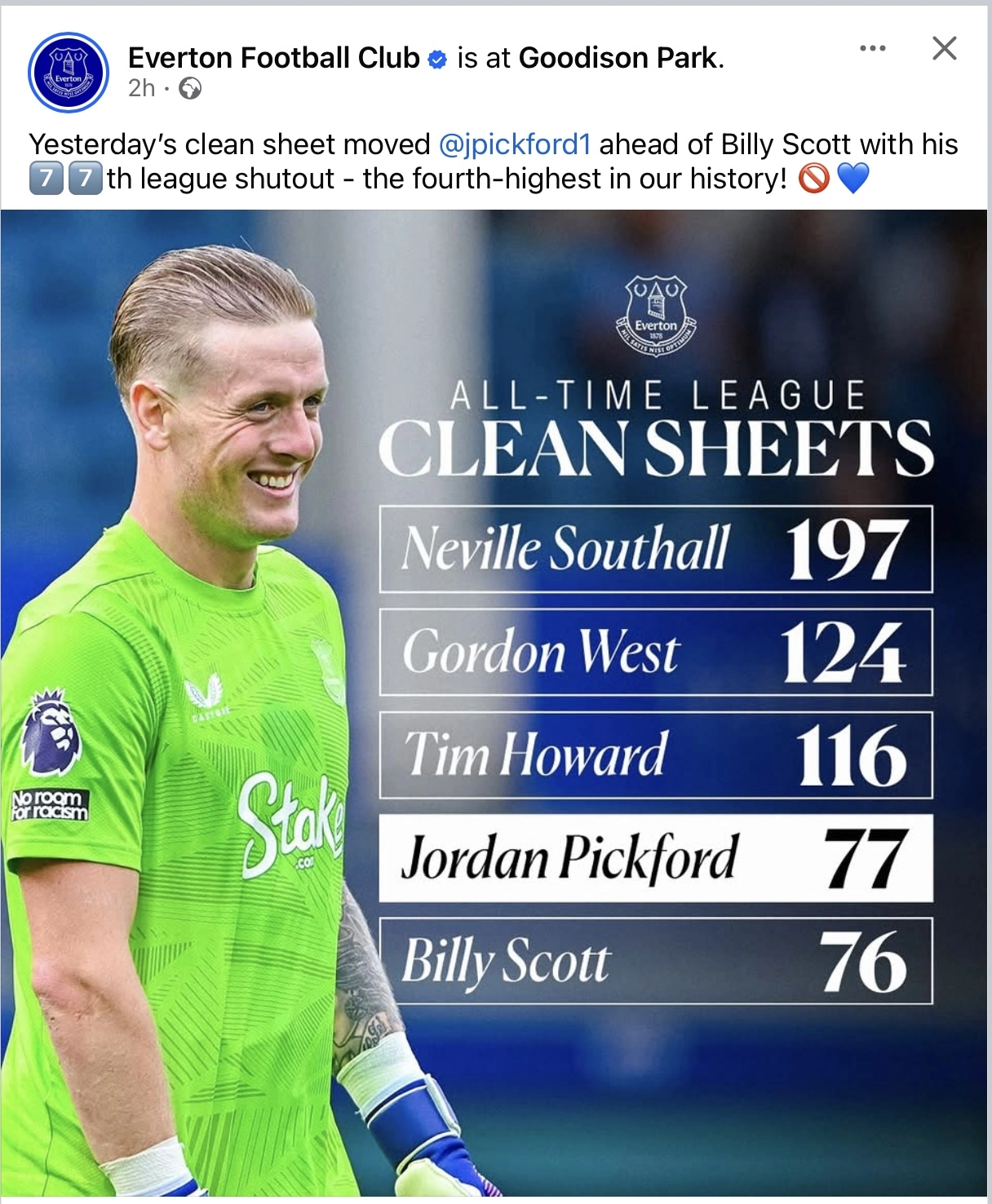 Pickford is an outstanding keeper and still miles behind the big man. No shame in that like as 99.9% of keepers I've seen in my lifetime don't come close to Southall.