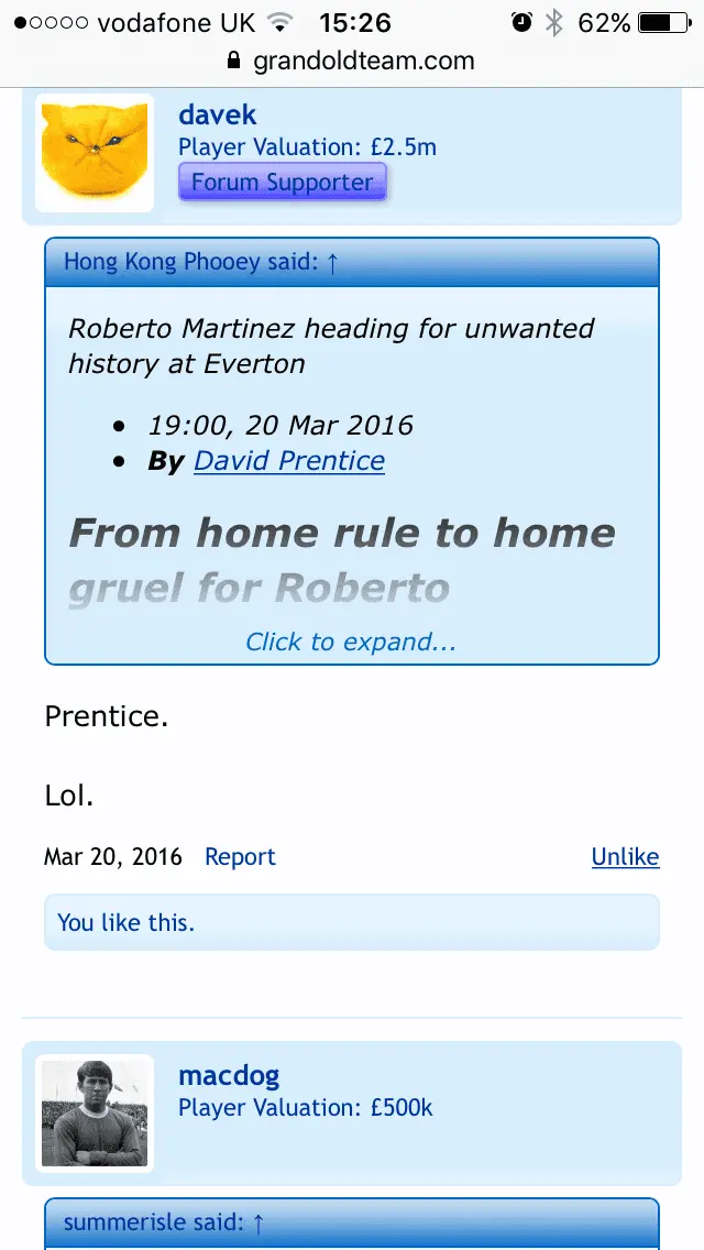 I'm just interested, both heavily linked to Manchester United, I once referenced a quote from SAF and I'll be honest your reply was a bit of a disgrace, yet David Gill (seemingly a bit of a liar) via David Prentice is 100% bang on.How did SAF get into this?!