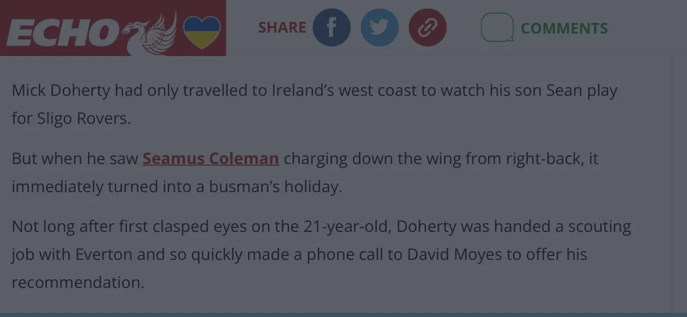….Sligo. Let’s not forget his Dad was watching Sean, noticed Seamus Coleman & recommended him to Everton. £60k Seamus Coleman all because of Sean.