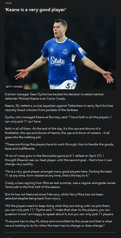 I have no words. Actually that was four but you know what I mean.Sean Dyche on Michael Keane: