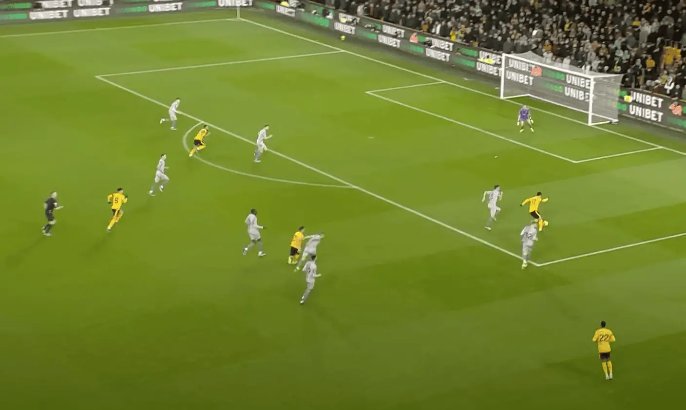 I mean, he literally looks and see Cunha, he is ballside and goalside of him yet, he also doesn’t get there. And when the move started, he was already marking Cunha.