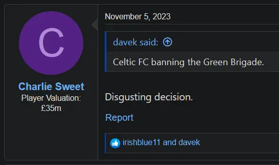 That’s why I asked them why they find the fact he played for rangers annoying. I haven’t accused anyone of bigotry in here and if there was, I’d just report it.