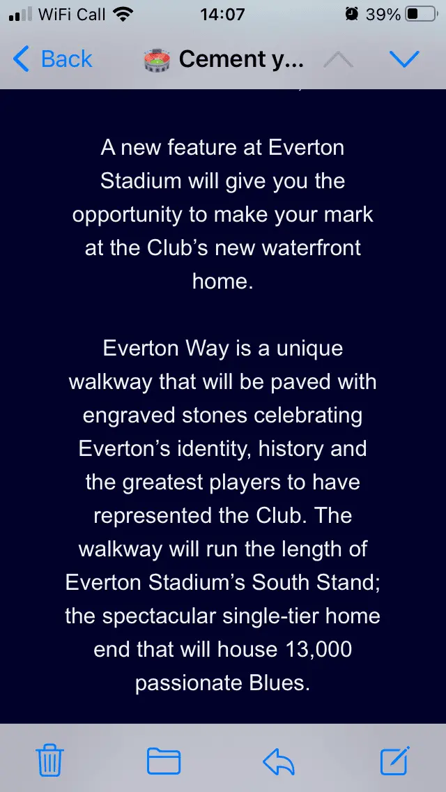 No I disagree ,it has not always been the case. To be fair , I don't mind if they stay or are moved. But we were told at the time of purchase they would be transferred to a new stadium if such a thing happened. This was well before BMD and a Goodison Legacy was ever mentioned. Anyway I've emailed the club for clarification.