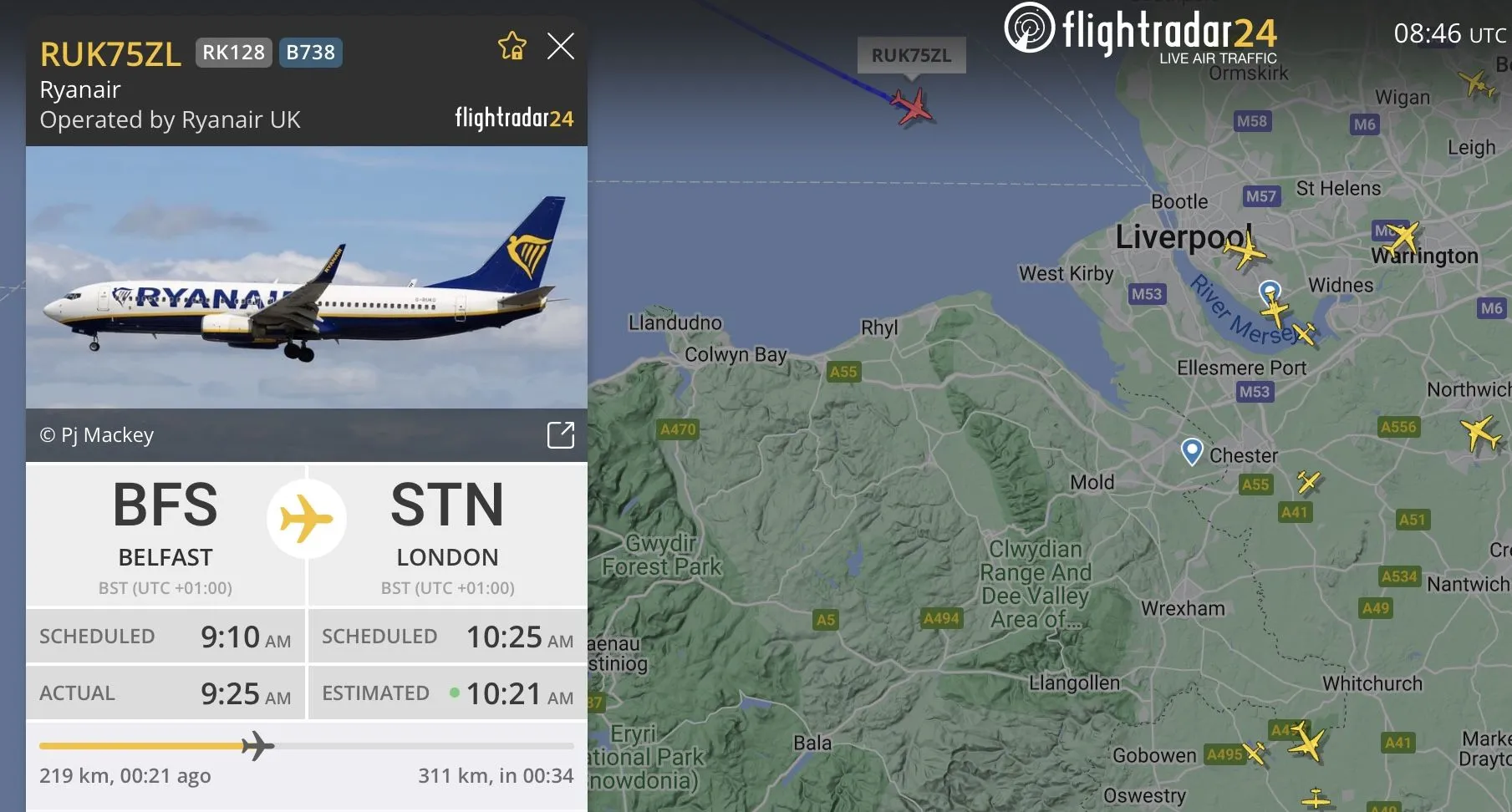 ….Dublin to Frankfurt flight just went right over with a Belfast to London coming in soon;