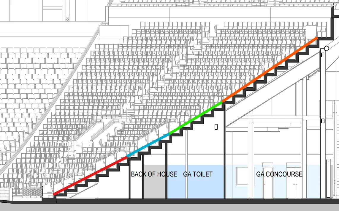 To navigate the various planning and heritage minefields, there has possibly been a far greater onus placed on the externals and certainly the conservation efforts, than would've been the case at any other site. I think it is fair to say that that additional cost plus the very high site preparation costs, has probably influenced the design strategy for the seated bowl. Of course the club will probably say it hasn't.