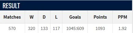 52% career win rate across a number of countries, his teams do score goals.