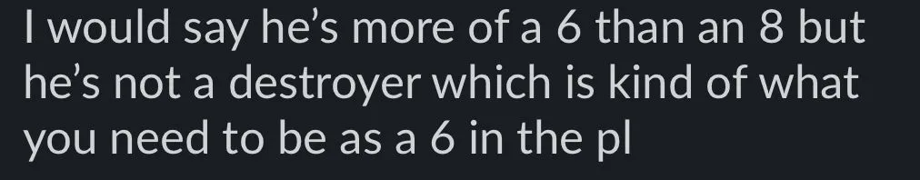 These are the type of lads you don't notice until you pay attention to them. I found Barry was the same, did all the horrible hard work with zero praise a lot of the time.Looks and sounds like the most generic defensive midfielder, he is surely AI generated?