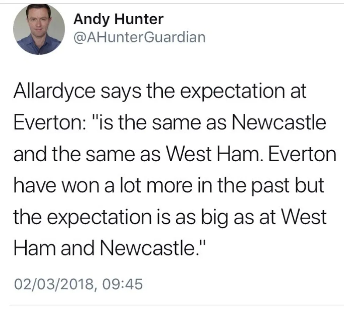 I think Moshiri generally has bowed to the fans wishes though. Both Martinez & Koeman were binned off when the discontent in the fanbase was too loud to ignore.There can be no certainty that the board will sack him at the end of the season. As any fan would, I hope we will win most of our last 10 games, which would place us probably in a Europe position. But what then? The board don't sit with the fans and probably rarely mix with any outside their own circle. The odds are they would keep him next season and give him money to spend. I know it is highly unlikely we will see a great end to the season, and if we just scrape through to safety Sam will go back to his Spanish villa with abuse ringing around his head, with a fat wad of money. Job done. Just imagine it on this forum though if we finish strongly and he stays.