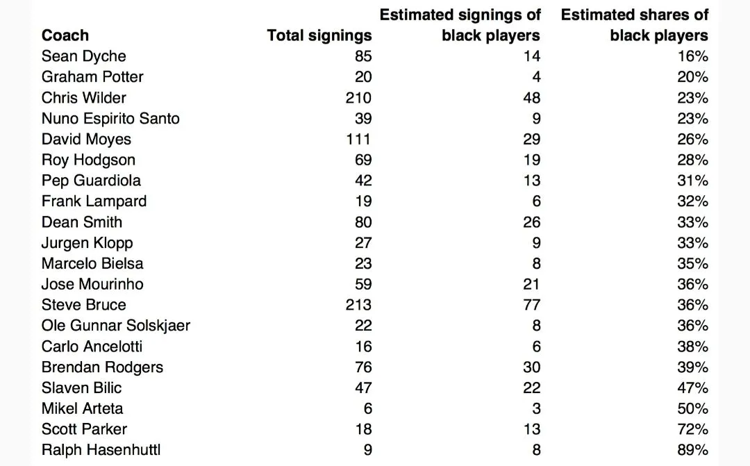 Think hassenhutl wants looking at. An Austrian signing 89% black players. That puts up more flags for meBloody hell, just looked to see any decent articles about what type of player Dyche goes for and this popped up.