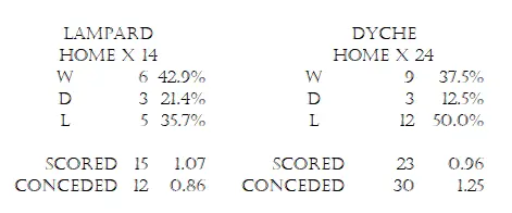 Lampard won a bigger percentage of games at home, scored more and conceded less.