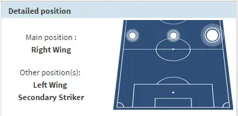 Inverted winger. Cuts inside often, loves to shoot and scores goals. Can see why we have an interest if we do.