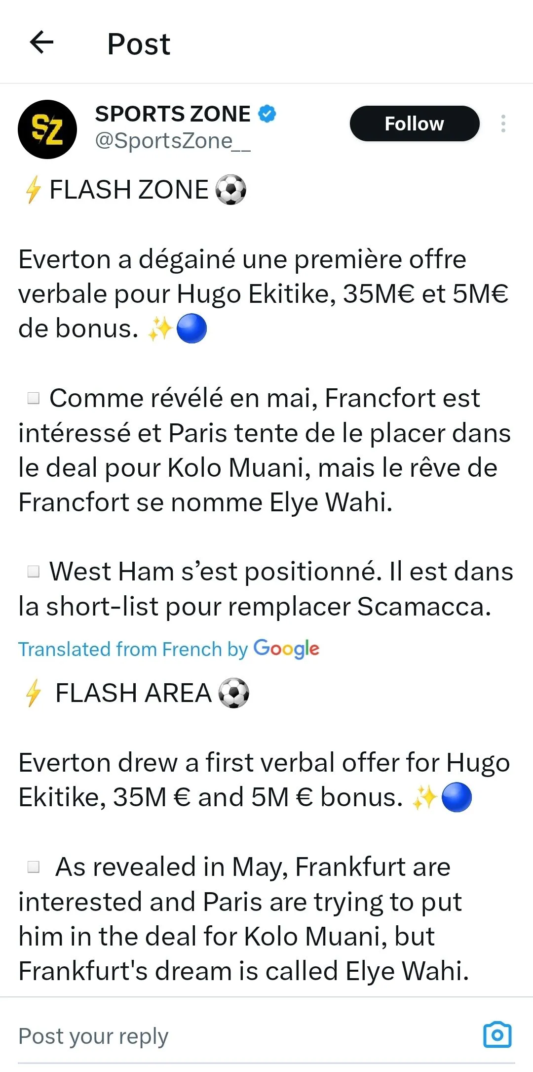 Yeah, I've wondered all summer if Ekitike would get a mention since he's freely available, that sounds very high though even if it is structured etc.