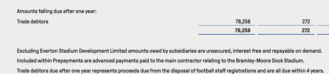 Think it's important to also remember instalments coming in too. If my interpretation of this is correct then as of June 22 when these accounts go up to we were owed 80m in payments for players we've sold? (With corresponding trade creditors at 30m)I think too much has been made of the structure of our deals, I don't think we can pat ourselves too much on the back for agreeing payments over several years for players when (1) it just seems to be how every deal is done these days and (2) people forget that we'll be paying installments for Onana and McNeil this year. Also, do we really think we got all our outgoing fees up front? The only one I think that's true for is Gray as Saudi clubs probably do have money upfront.