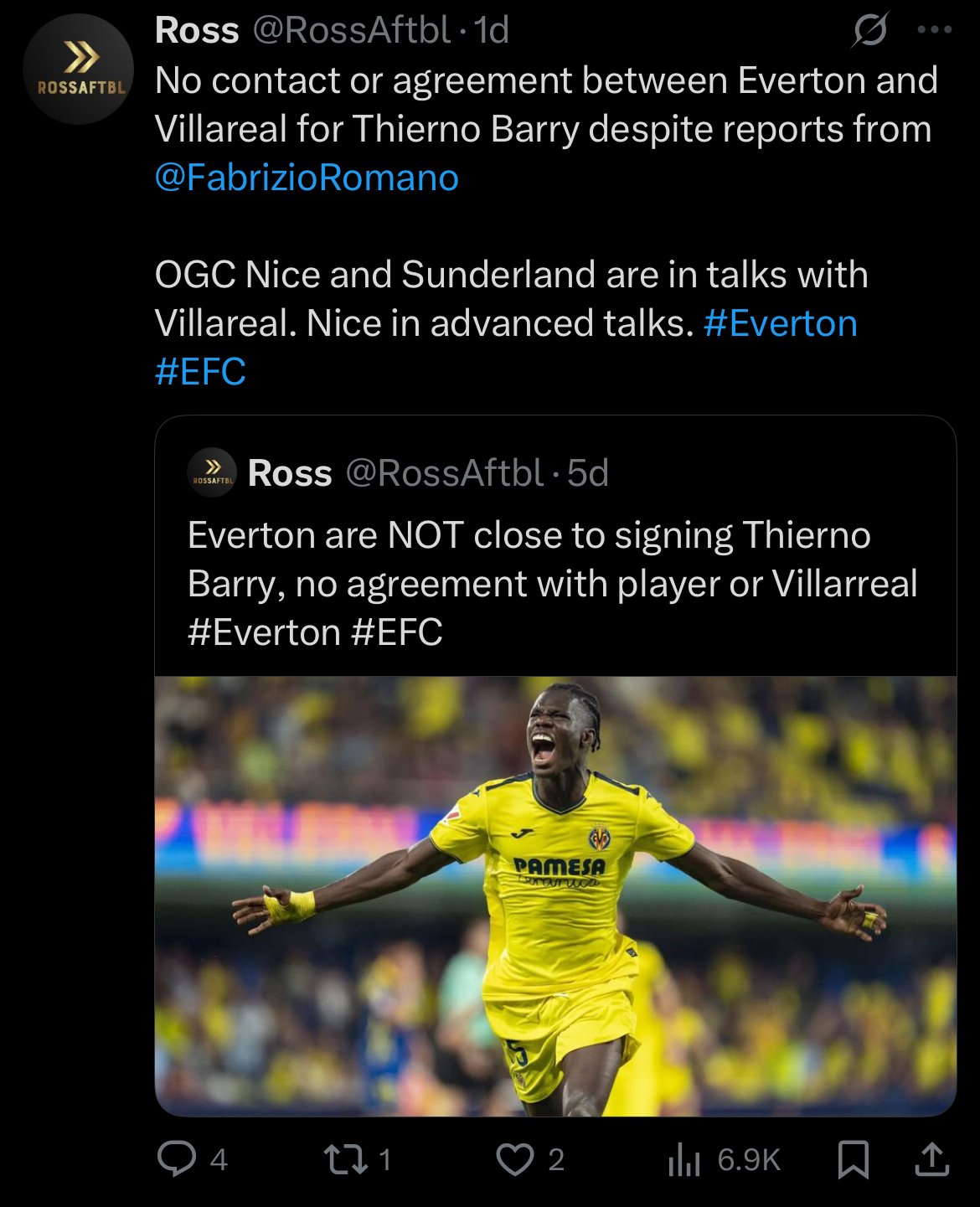 This particular attention seeking trumpet said the Friedkin group had 100% pulled out of any deal to buy Everton a week after they already had. Time to celebrateOn the GOT scale, how reliable is this source?