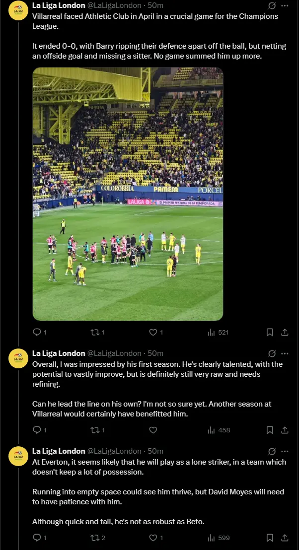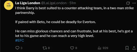 The admittedly minimal clips I’ve seen left me thinking the same re him being like Beto, whom I’m already not convinced Moyes fancies to lead the line with they type of football I suspect he wants to play.