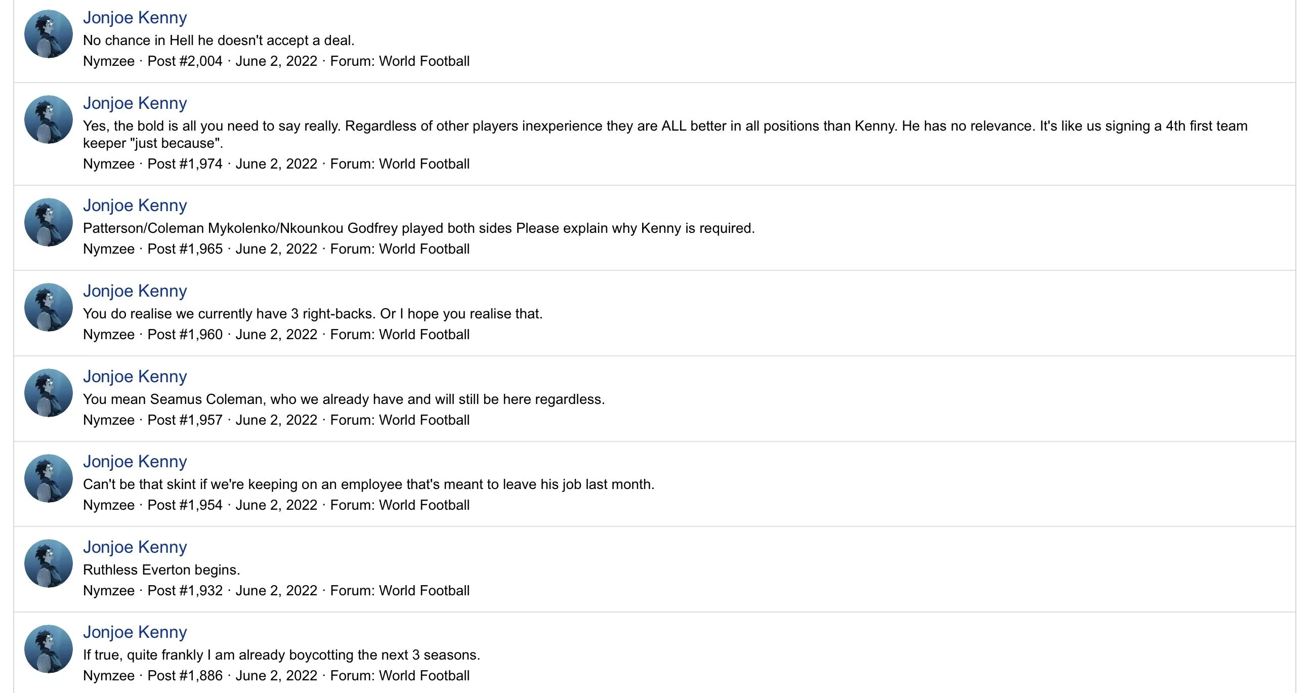 ….but your reaction to Kenny being offered a deal is probably worst than anybody’s reaction to Davies, not forgetting lots of posters don’t rate him either;