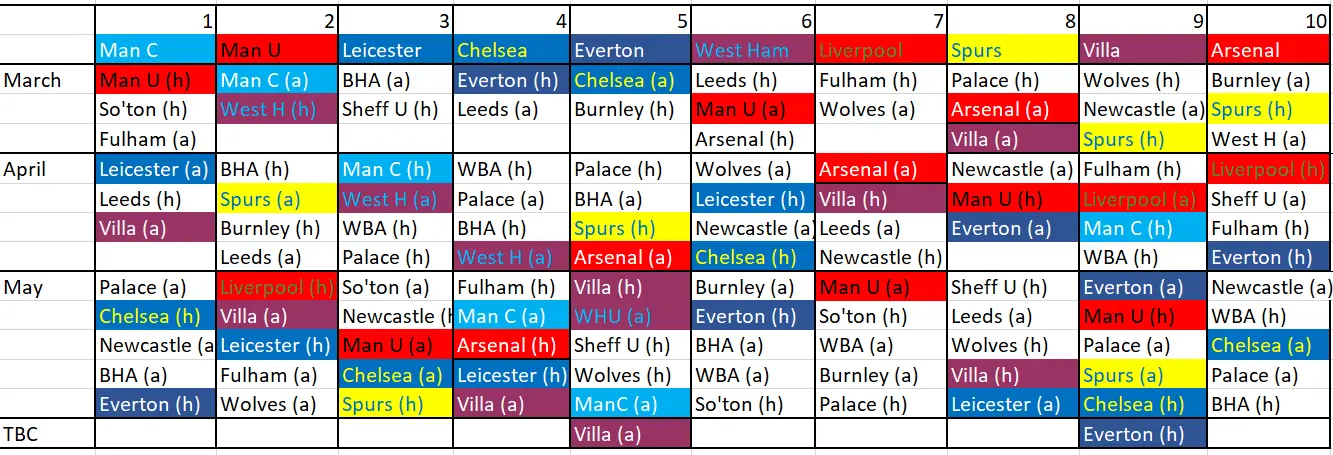 Thanks for doing that. It’s impossible trying to guess any results because this season more than any other has been so unpredictable. The RS were top at Christmas, who’d have seen this collapse happening?
