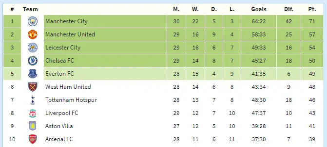The fact is tho is we don’t, we need Chelsea to not win 1 game and us to win all 11 games.Leicester are catchable, they’ve got so many games with teams around them. We need certain results to go our way to compress that 4th spot. For example, we need Utd to tonk Leicester twice, yes making catching Utd impossible but dragging Leicester into a scrap.