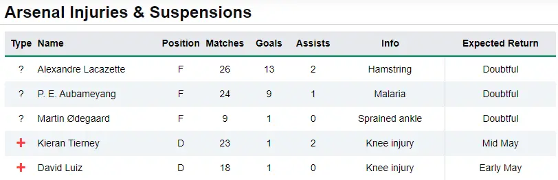 No Lacazette, Aubameyang, Tierney or Luiz either by all accounts
