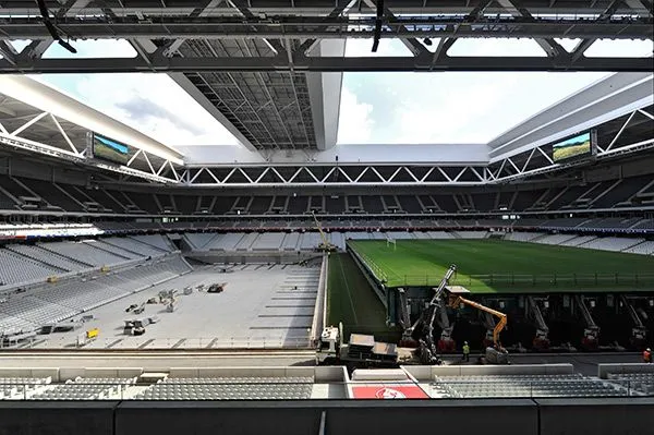 Inspired by looking at Lille's stadium, they have a retractable pitch, that appears to move half way, for other sporting events.