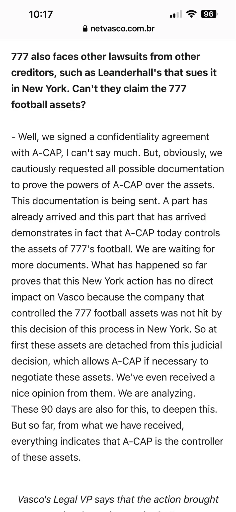 It’s not a negative. IF it’s been clarified that Acap have control of the football assets and Leadenhall have no claim that’s a useful thing, but I guess only if the loan to us is classed as a football asset.
