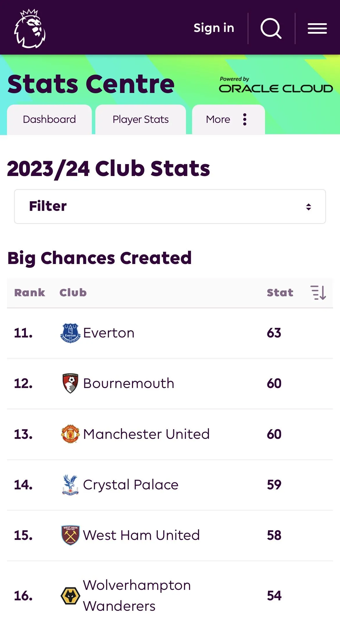 I’m not huge on stats but we created more chances than half the league including Man U apparently and Bournemouth who seems to be showered with praise for their style of play… also brave Luton were 18th with 47 and super cool attacking Burnley were 19th with 45… still can’t believe Kompany got that job!