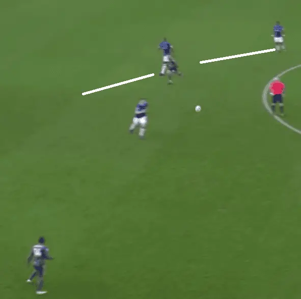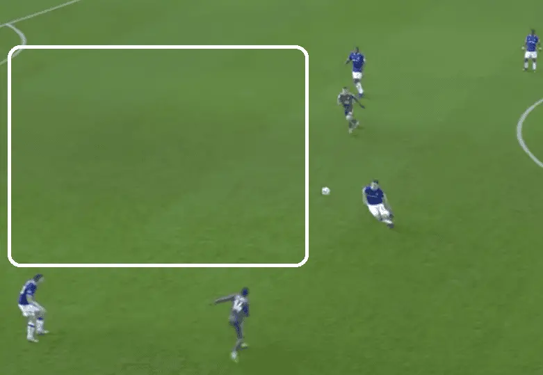 Instead, Zouma doesn't react, Gueye doesn't follow suit and we are left with a huge area of green for Vardy to run into.